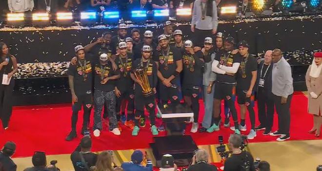 NBA杯决赛,尼克斯在不被看好情况下,124-113击败马刺拿到冠军,布伦森荣获MVP。