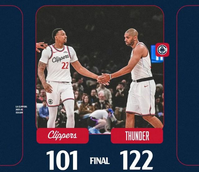 今日常规赛,快船客场面对联盟第一的雷霆,最终以101-122惨败。