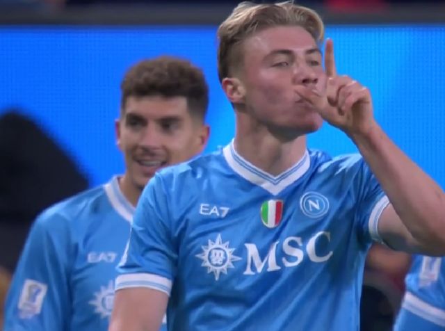 下半场,霍伊伦德自己站出来,杀死比赛胜负的悬念。第63分钟,那不勒斯反击,霍伊伦德接球后,用身体和速度甩开AC米兰后卫,最终小角度抽射远角破门,比分也锁定为2-0。