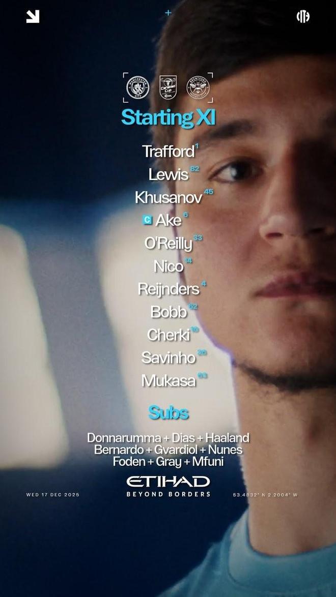 北京时间12月18日3:30,英联杯1/4决赛,曼城坐镇阿提哈德球场迎战布伦特福德,本场主裁判为巴罗特,赛前双方首发出炉。