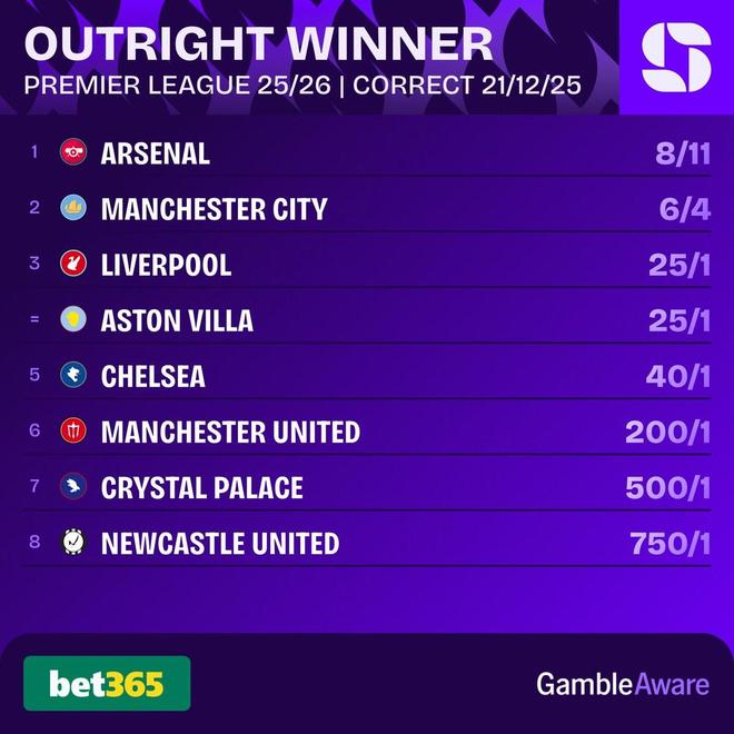 TA:阿森纳获得“圣诞冠军”,但历史表明他们不能高枕无忧