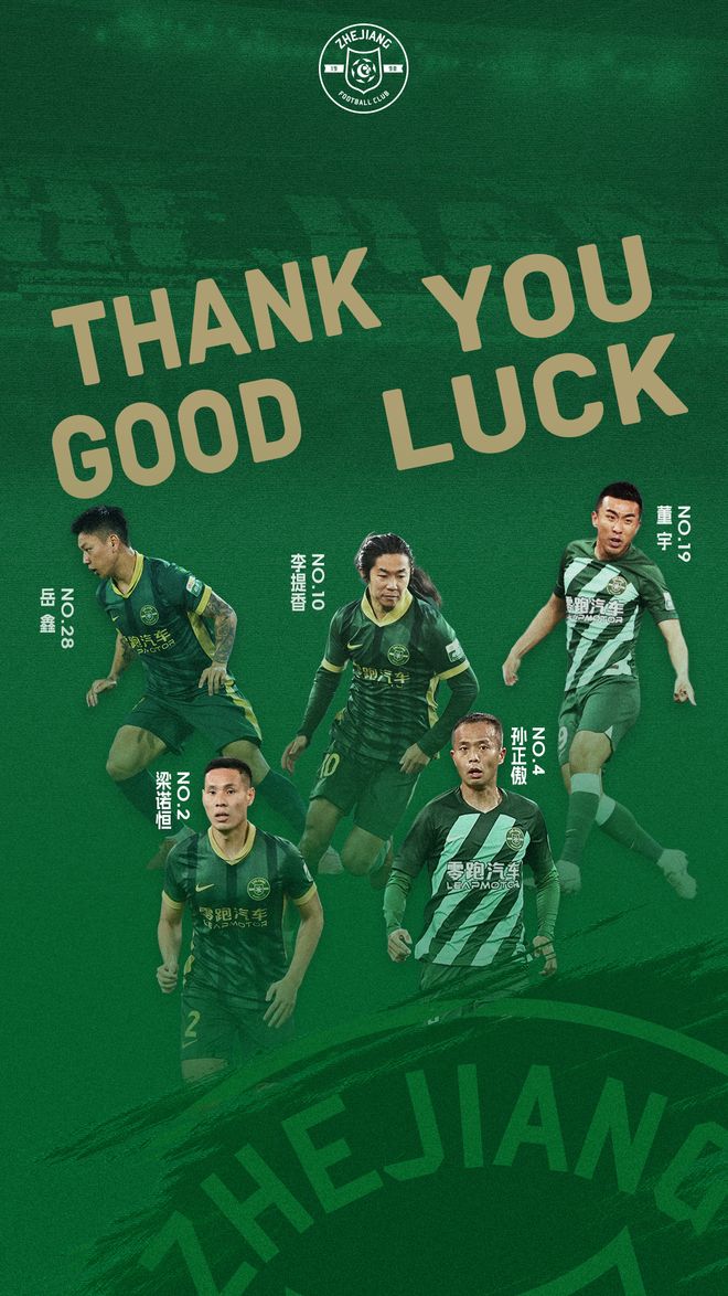 孙正傲和董宇都出自浙江队青训,孙正傲夏窗时便被租借到青岛海牛,董宇虽一直在球队效力,但一人一队的梦想最终也没能完成。岳鑫和梁诺恒同样在浙江队效力多年,不过两人本赛季的出勤率都不高,岳鑫仅出场7场,而梁诺恒则出场15场,这样的出勤率离开也属正常。